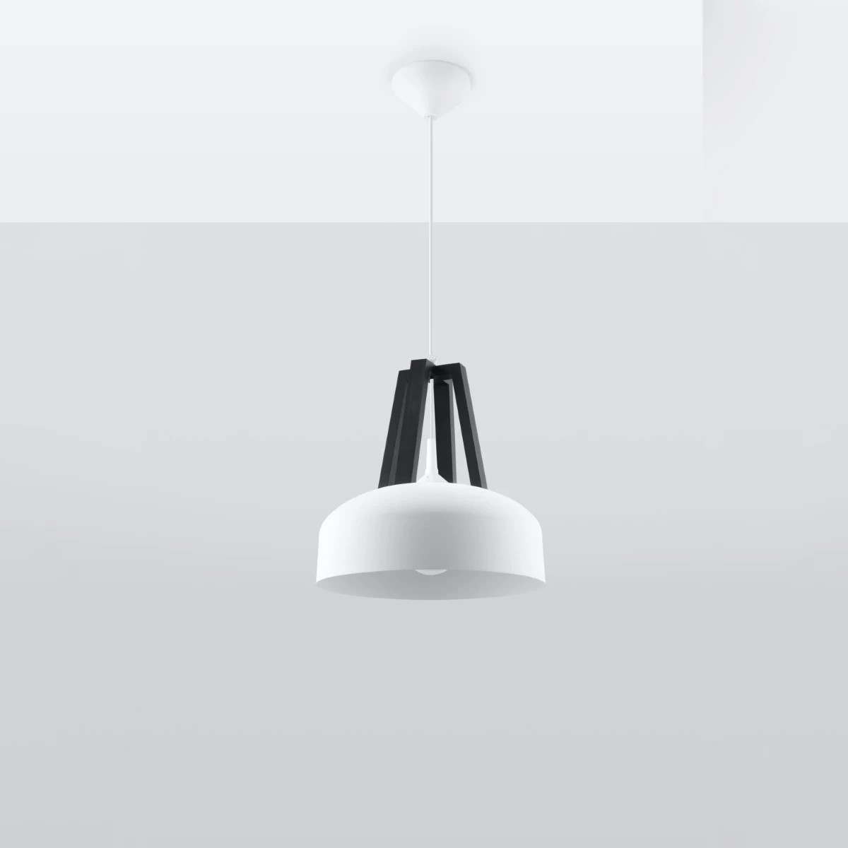 Czarny lub biały klosz wzbogacony drewnianym akcentem - design naszej nowoczesnej lampy wiszącej aż woła o miejsce w eleganckim wnętrzu. Szybko się w nim rozgości, wprowadzając niepowtarzalny klimat.