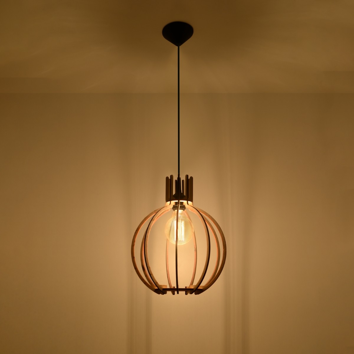 Klasyczna forma lampy i uniwersalny kolor naturalnego drewna sprawia, że pasuje ona do większości wnętrz w różnych stylach. Od industrialnego, poprzez skandynawski, a skończywszy na boho.