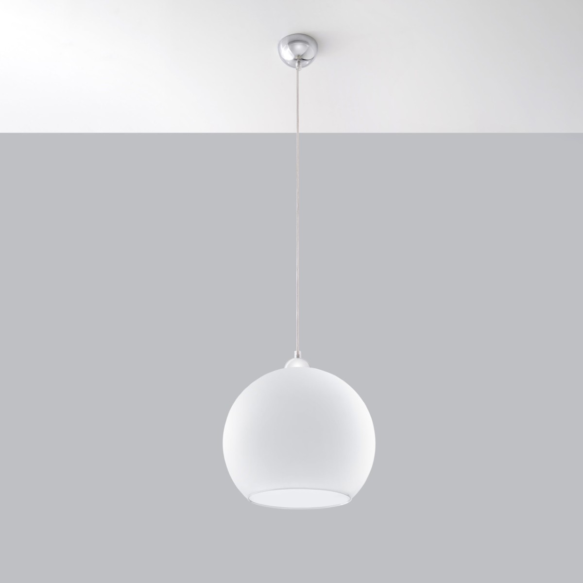 Klosz o kształcie kuli jest wykonany ze szkła, więc idealnie rozprasza światło w pomieszczeniu. W rezultacie dociera ono równomiernie we wszystkie zakątki i estetycznie się prezentuje.