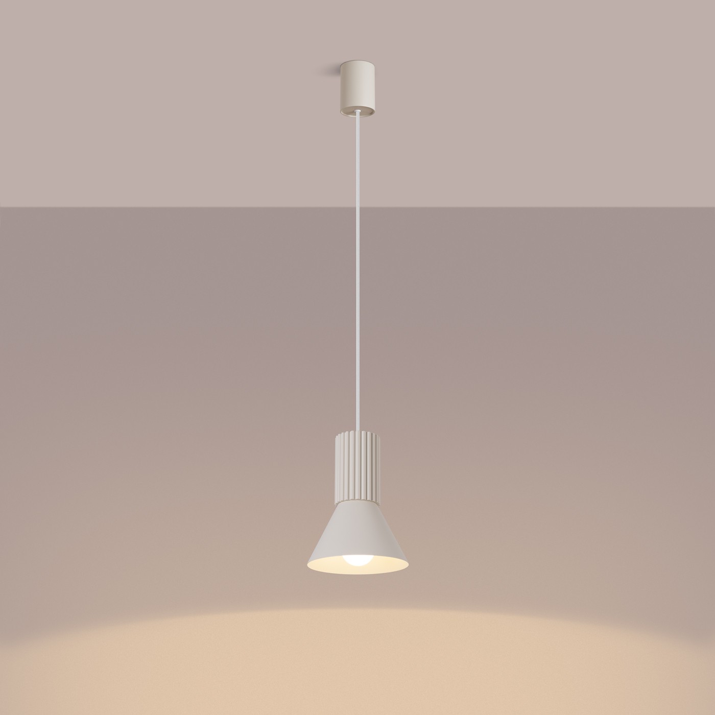 Nowoczesność w minimalistycznym wydaniu – lampa wisząca ESTRIA łączy prostotę formy z innowacyjnym podejściem do oświetlenia. Jej wyjątkowy, ryflowany design nie tylko dodaje charakteru każdemu wnętrzu, ale również efektywnie rozprasza światło, tworząc przytulną atmosferę, jednocześnie podkreślając wybrane elementy przestrzeni.