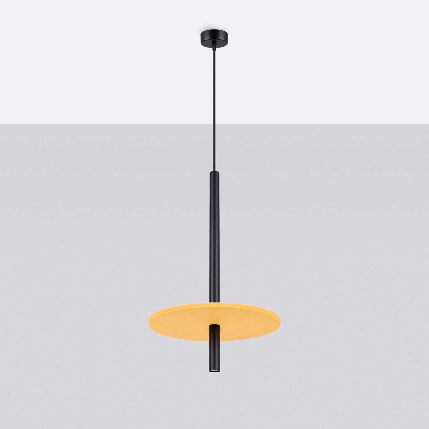 Lampa wisząca FELTRO to połączenie nowoczesności z eleganckim akcentem. Filcowy krążek w kolorach żółtym, beżowym i granatowym dodaje wnętrzu przytulności, tworząc subtelną atmosferę. Smukła, stalowa rurka, na której zawieszony jest klosz, nadaje lampie lekkości i nowoczesnego charakteru, a regulacja wysokości pozwala dopasować ją do różnych przestrzeni.