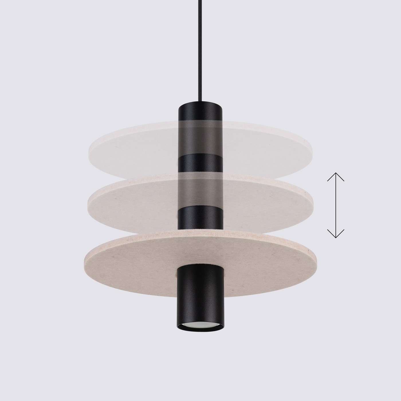 Lampa PELTA tworzy przytulną atmosferę, zapewniając komfortowe warunki do pracy, odpoczynku i relaksu. Dzięki regulacji wysokości filcowego krążka, możesz dostosować lampę do indywidualnych potrzeb przestrzeni.
