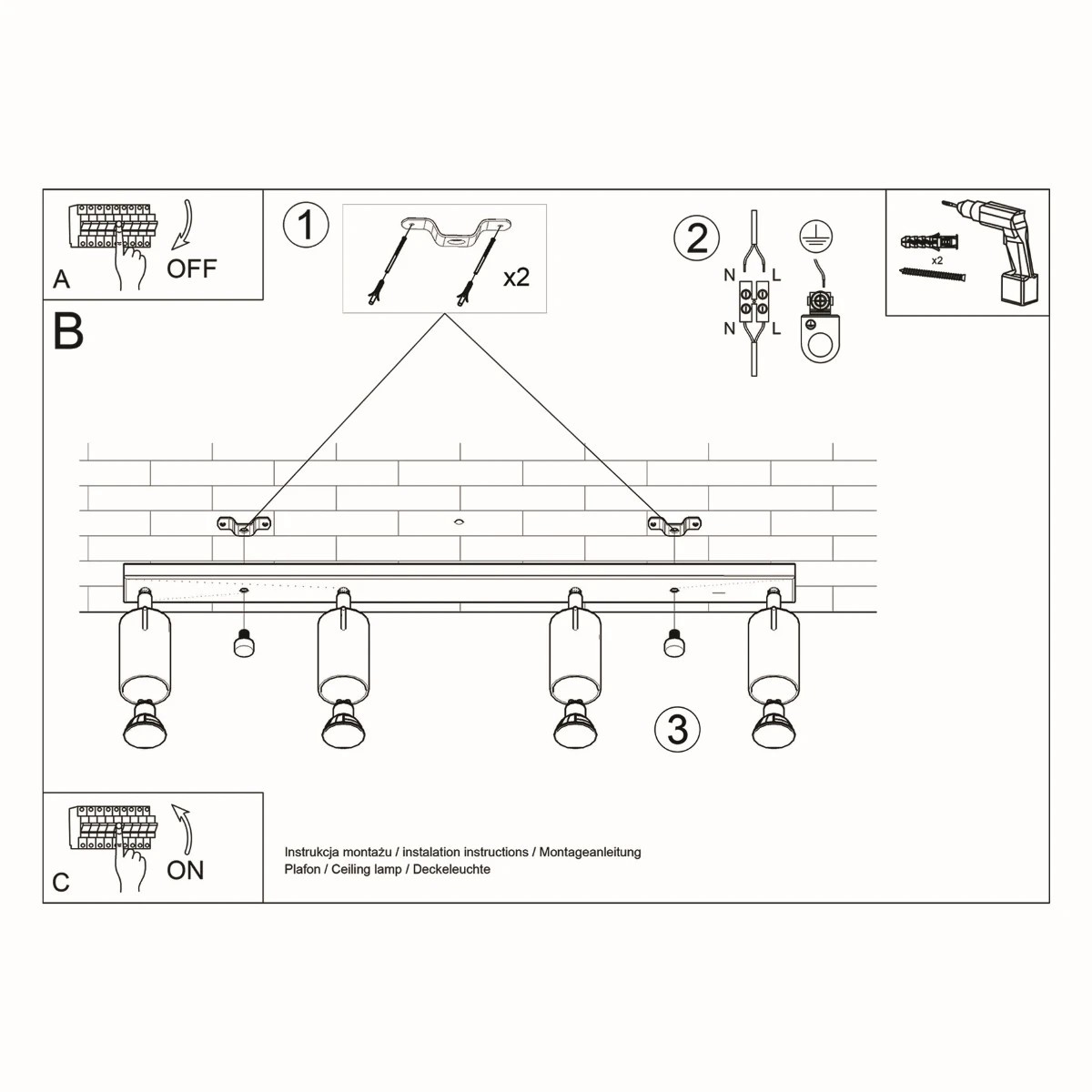 | Rodzaj lampy | Plafon 4 (listwa) |