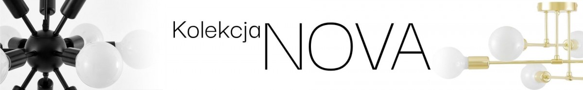 NOVA to seria lamp, która harmonijnie wpisuje się we współczesne aranżacje domowe. W jej skład wchodzą lampy sufitowe, kinkiety i lampy stojące z mlecznymi kulami — projektowane z myślą o spójnym charakterze wnętrza. Dostępne dwa kolory: czerń i klasyczne złoto umożliwiają łatwą aranżację wnętrz w jednym stylu, niezależnie od ich przeznaczenia.
