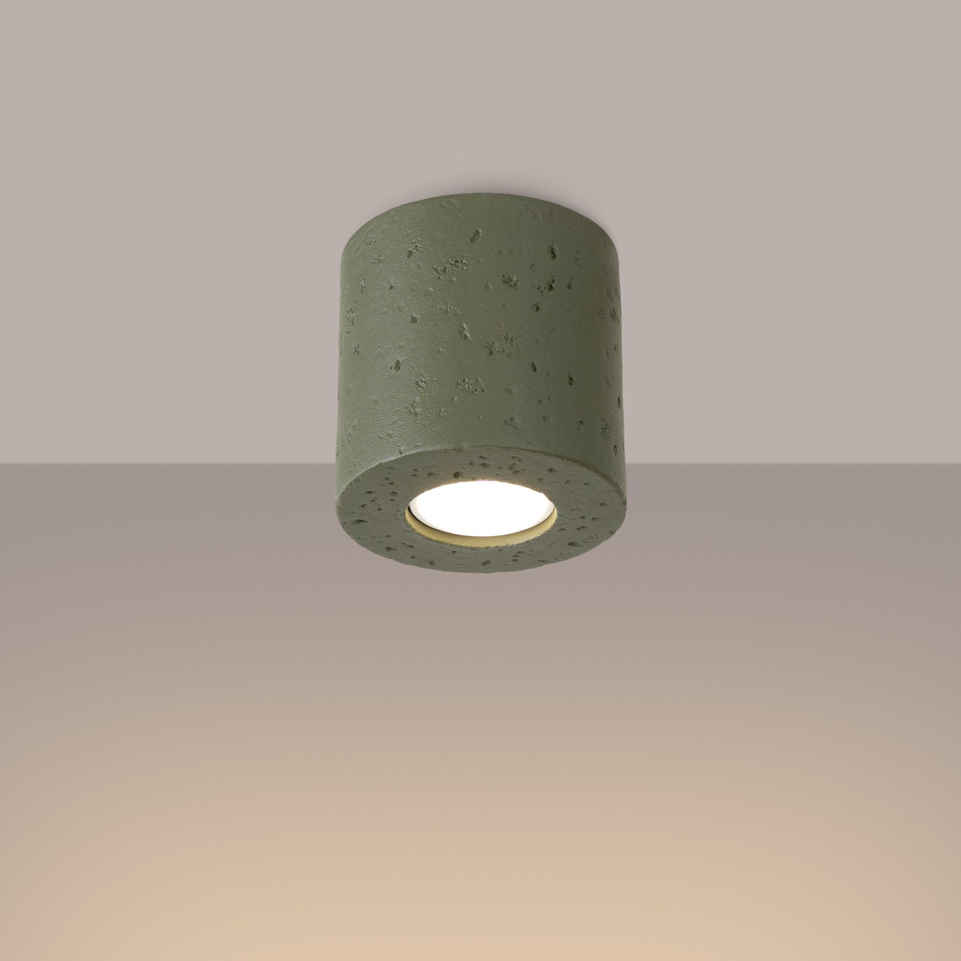 Wykonana z betonu zachowuje swój minimalistyczny, industrialny charakter, jednocześnie zyskując cieplejszy ton dzięki zastosowaniu modnych odcieni – oliwkowej zieleni i beżu. To połączenie surowego materiału z przytulnymi barwami sprawia, że w pomieszczeniu pojawia się harmonia i subtelne ciepło.