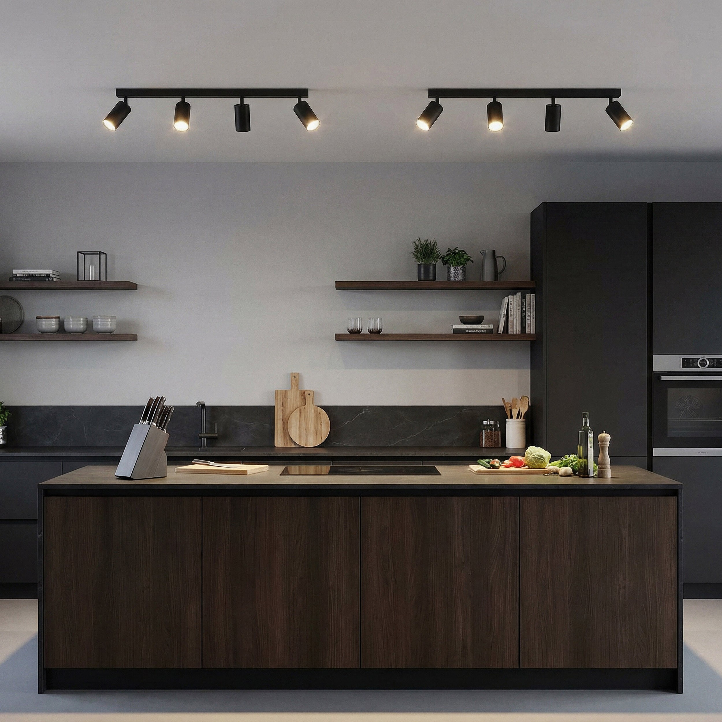 Geometryczna belka i cztery tuby tworzą formę, która łatwo wpisuje się w wiele aranżacji - od loftowych, przez minimalistyczne, po skandynawskie. Ten spot z czterema źródłami światła dobrze prezentuje się w większych pomieszczeniach, zwłaszcza salonach, ponieważ zapewnia światło o szerokim zasięgu. Wielu użytkowników wybiera ją również do jadalni i w formie spotów do kuchni, aby precyzyjnie doświetlić blat roboczy lub wyspę. Jej zaletą jest to, że wnosi do wnętrza nowoczesny rytm i pozwala podkreślić najważniejsze miejsca w domu.