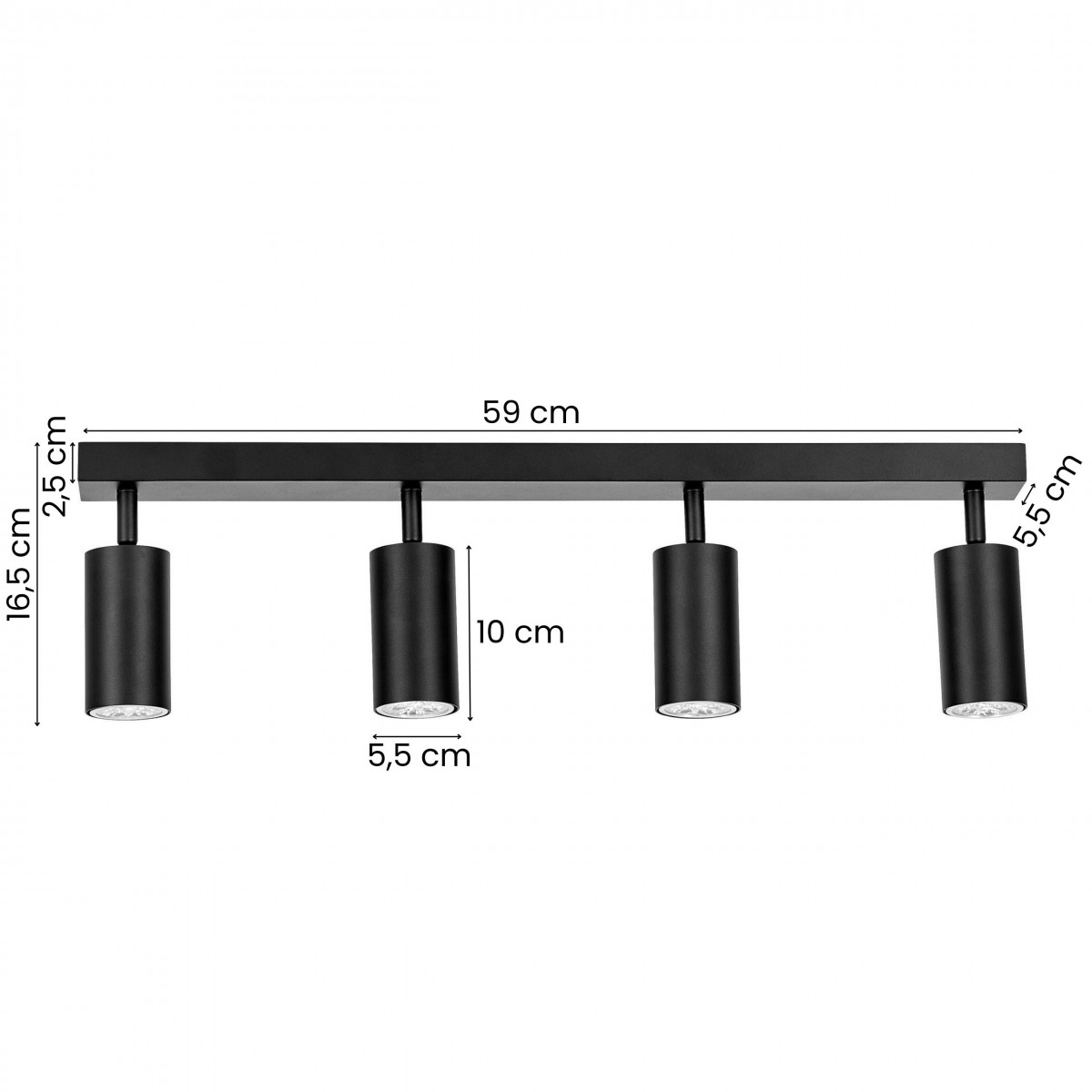 Czarna lampa sufitowa NEO W4 łączy cztery tuby reflektorowe osadzone na długiej, płaskiej belce. Jej forma jest bardzo nowoczesna i zaprojektowana z myślą o funkcjonalności, która zwiększa komfort domowych aktywności.