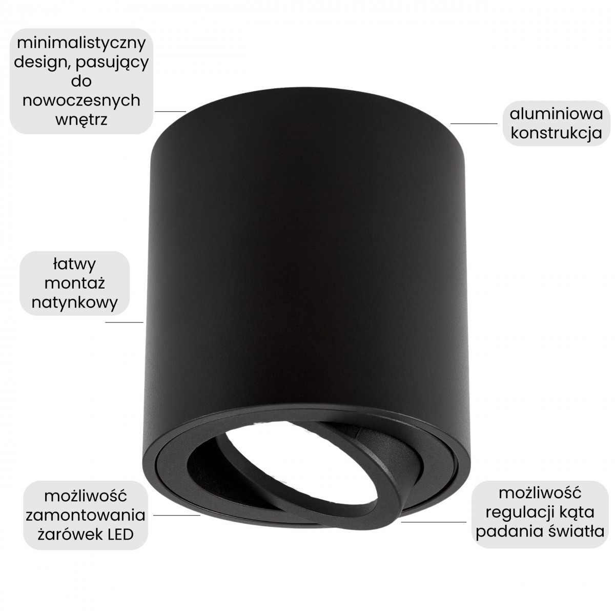 BOLT W1 to czarny spot sufitowy o cylindrycznym kształcie, wyposażony w jeden kierunkowy punkt świetlny. Prosty design i kompaktowa forma sprawiają, że świetnie prezentuje się solo, ale najpełniej w zestawieniach kilku sztuk, wisząc nad łóżkiem w sypialni, wzdłuż korytarza czy nad blatem w kuchni.