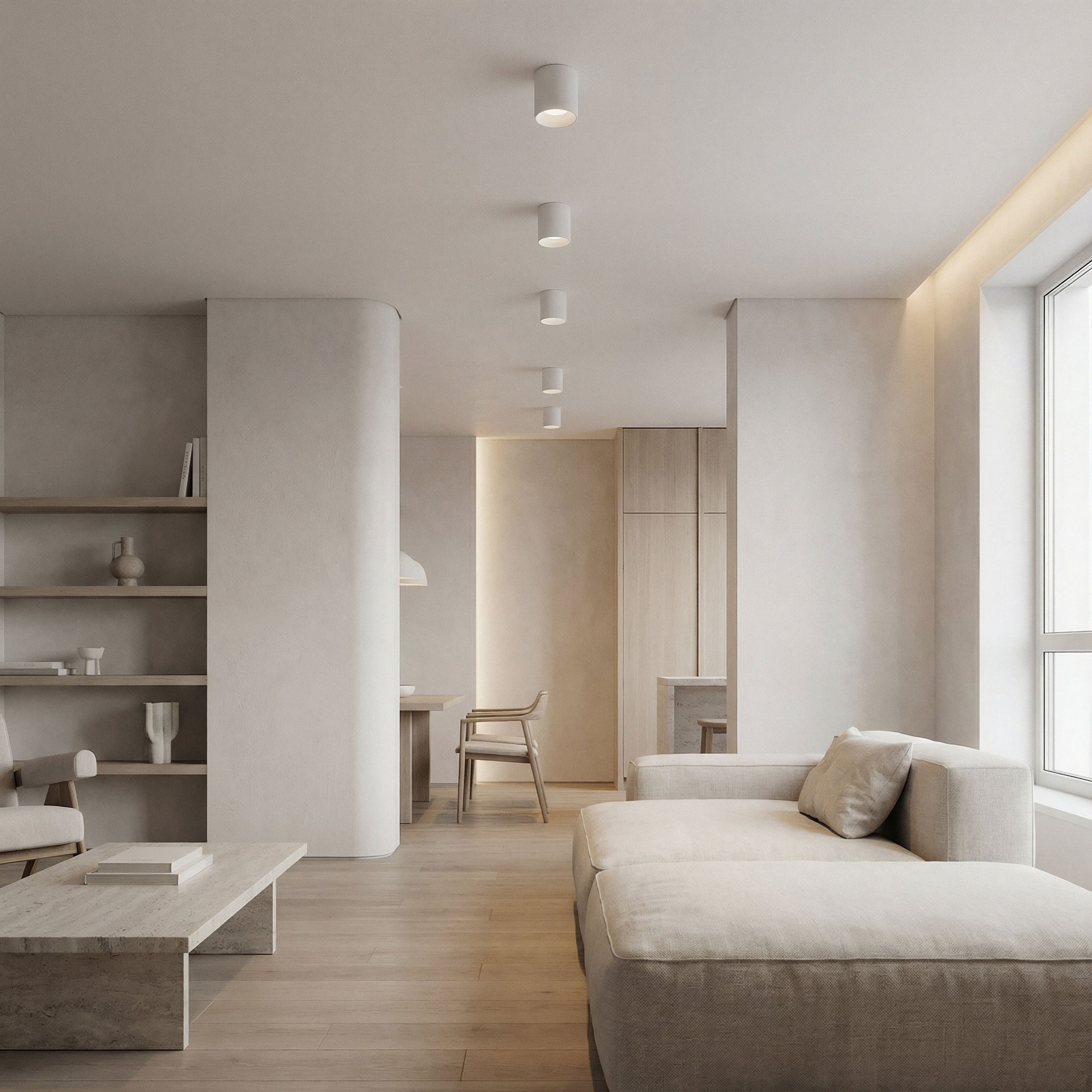 NURI W1 to cylindryczny, biały spot sufitowy, który zapewnia komfortowe, praktyczne oświetlenie w miejscach wymagających dobrej widoczności. Doskonale sprawdza się nad blatem, w korytarzu, przy łóżku lub jako uzupełnienie oświetlenia głównego w formie spotu do salonu. Tworzy atmosferę sprzyjającą codziennym czynnościom: od porannego szykowania się do wyjścia po wieczorne momenty relaksu w zaciszu domowym.