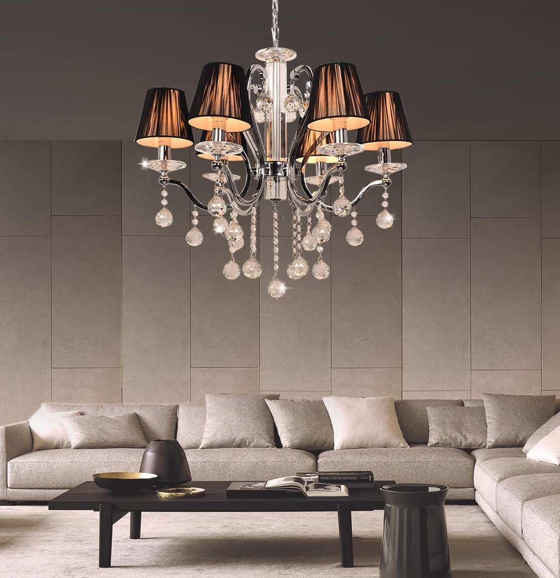 Bujność konstrukcji i fenomenalne kryształowe ozdoby tworzą z żyrandola kryształowego BELLISICA produkt, które odnajdzie się zarówno w domowym salonie, jak i ekskluzywnym hotelowym lounge, gdzie będzie jednocześnie ozdobą i oświetleniem. W połączeniu z sześcioma abażurami oraz czarną, chromowaną oprawą tworzy żyrandol w klasycznym stylu.