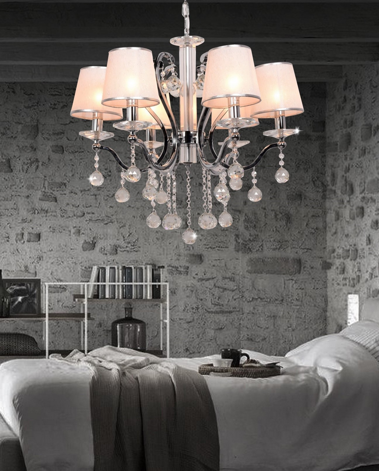 Docelowym miejscem, w którym odnajdzie się żyrandol kryształowy BELLISICA, z całą pewnością jest gustowny salon oraz sypialnia. Jego srebrna oprawa oraz sześć eleganckich, choć prostych abażurów idealnie oddają klasyczny styl oświetlenia, zapewniając perfekcyjne doświetlenie wnętrza oraz jego dekorację za sprawą licznych ozdób z wysokiej klasy kryształu.