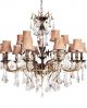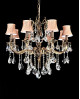 Prezentowana kolekcja LUSSINARE to pełne przepychu i bogatych zdobień oświetlenie, które jednocześnie jest nieocenionym źródłem światła oraz głównym motywem dekoracyjnym pomieszczenia. Żyrandol składa się z urokliwej, inkrustowanej, metalowej konstrukcji w kolorze mosiądzu, której każdy element został pieczołowicie ozdobiony rzeźbieniami oraz wisiorami z kryształową łezką na końcu. Blask bijący od żyrandola jest zasługą ośmiu źródeł światła, znajdującymi się pod abażurami w stylu retro, osłoniętymi drapowaną, kremową tkaniną.