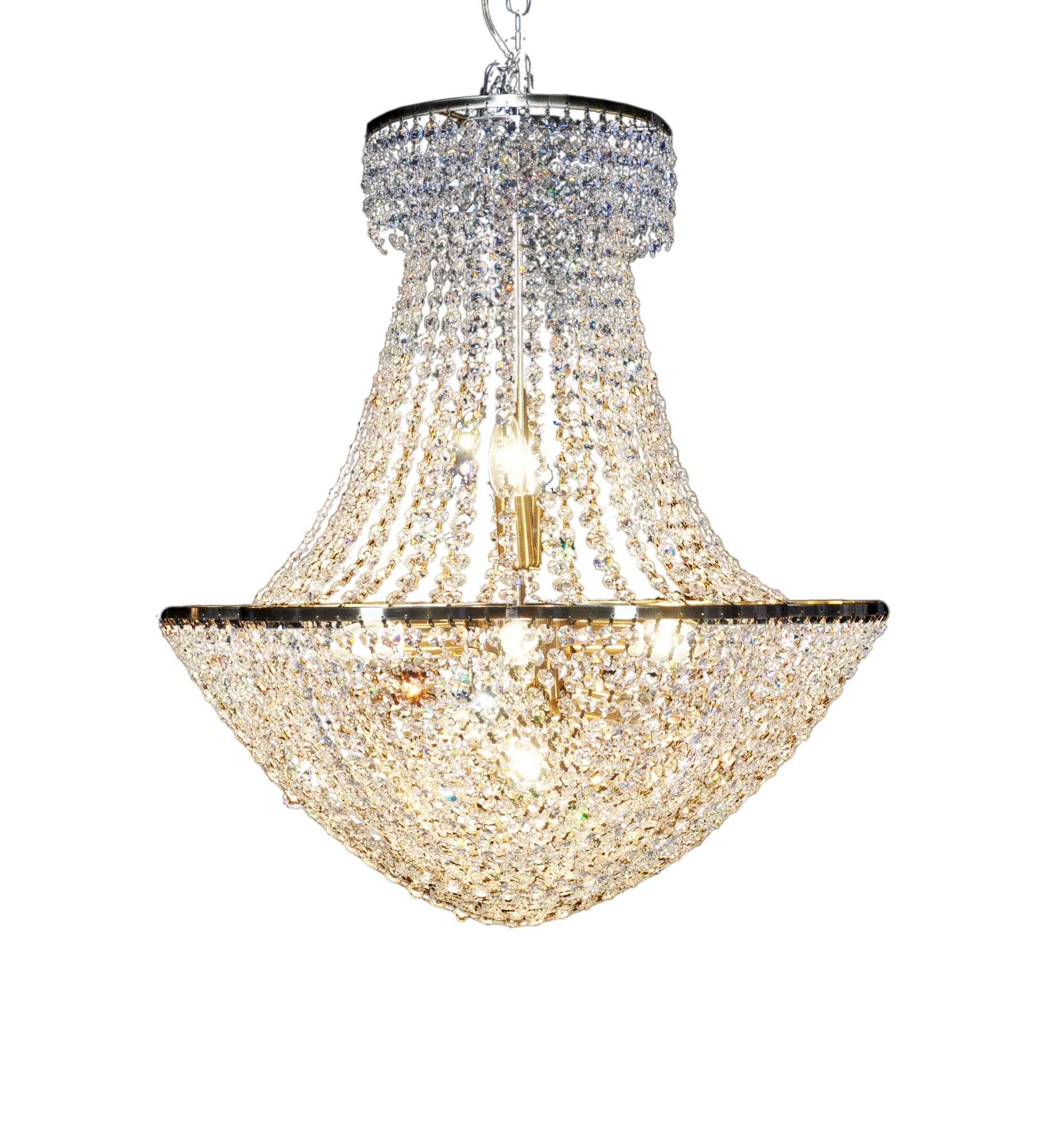Żyrandol AVIOLLA skonstruowany i wykonany w stylu klasycznym, dzięki zastosowanej konstrukcji na bazie mosiężnej oprawy i wysokiej klasy kryształów, zachwyca swoim wyglądem oraz funkcjonalnością. Przy pomocy dziesięciu źródeł światła jest w stanie oświetlić okazałą przestrzeń sal balowych i restauracyjnych.