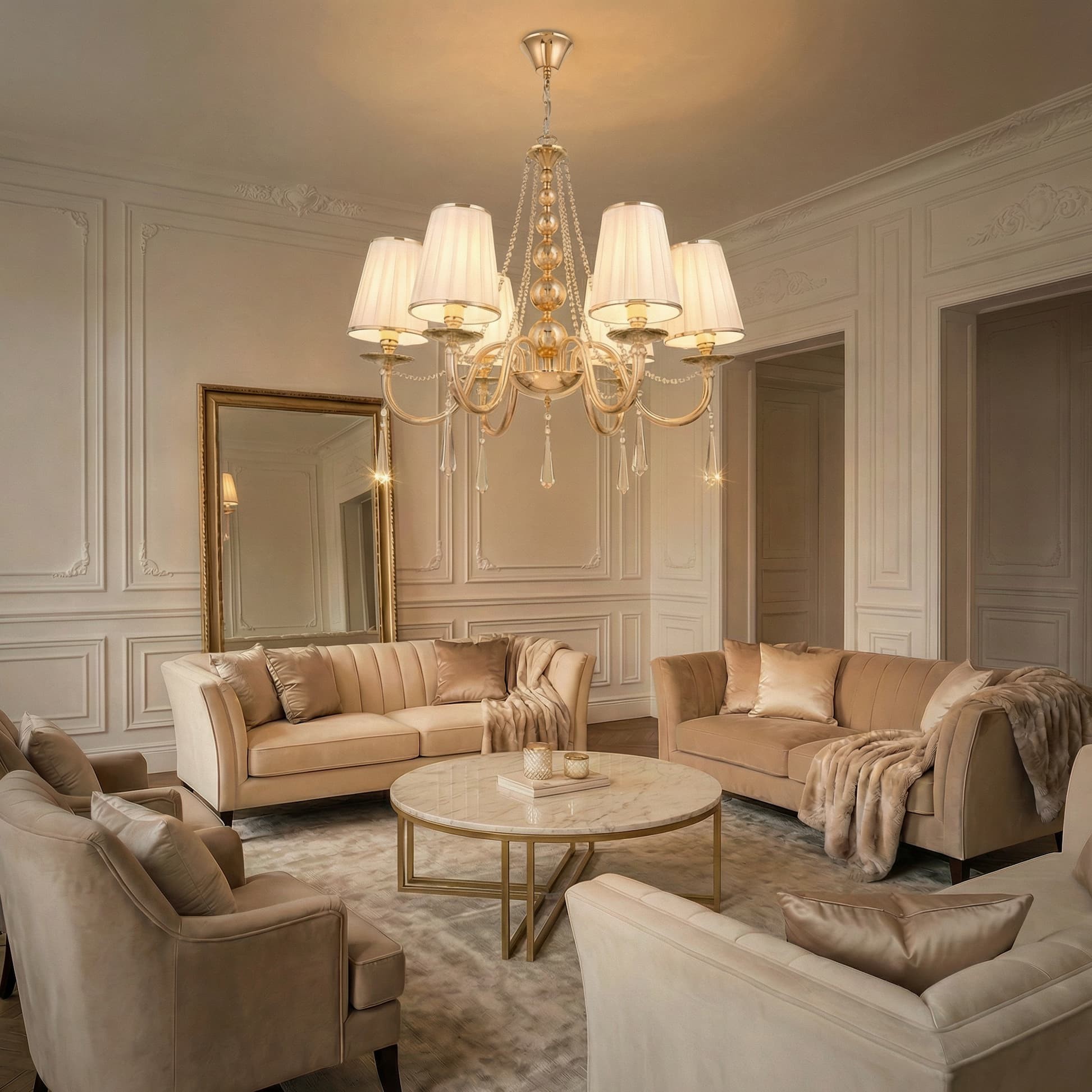 | Materiał lampy | metal, kryształ, tkanina |