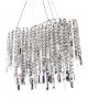 Kryształowe fale scalone metalowymi, chromowanymi okuciami tworzą zjawiskową lampę wiszącą — nowoczesną wersję opraw pojawiających się w najsłynniejszych teatrach świata. Wysoka reprezentatywność pozwala jej odnaleźć się we wszelkich lokalach komercyjnych, ale też stać się mocnym punktem aranżacji nowoczesnego salonu. Podtrzymywana przez cieniutkie, chromowane nity i chromowaną podsufitkę.