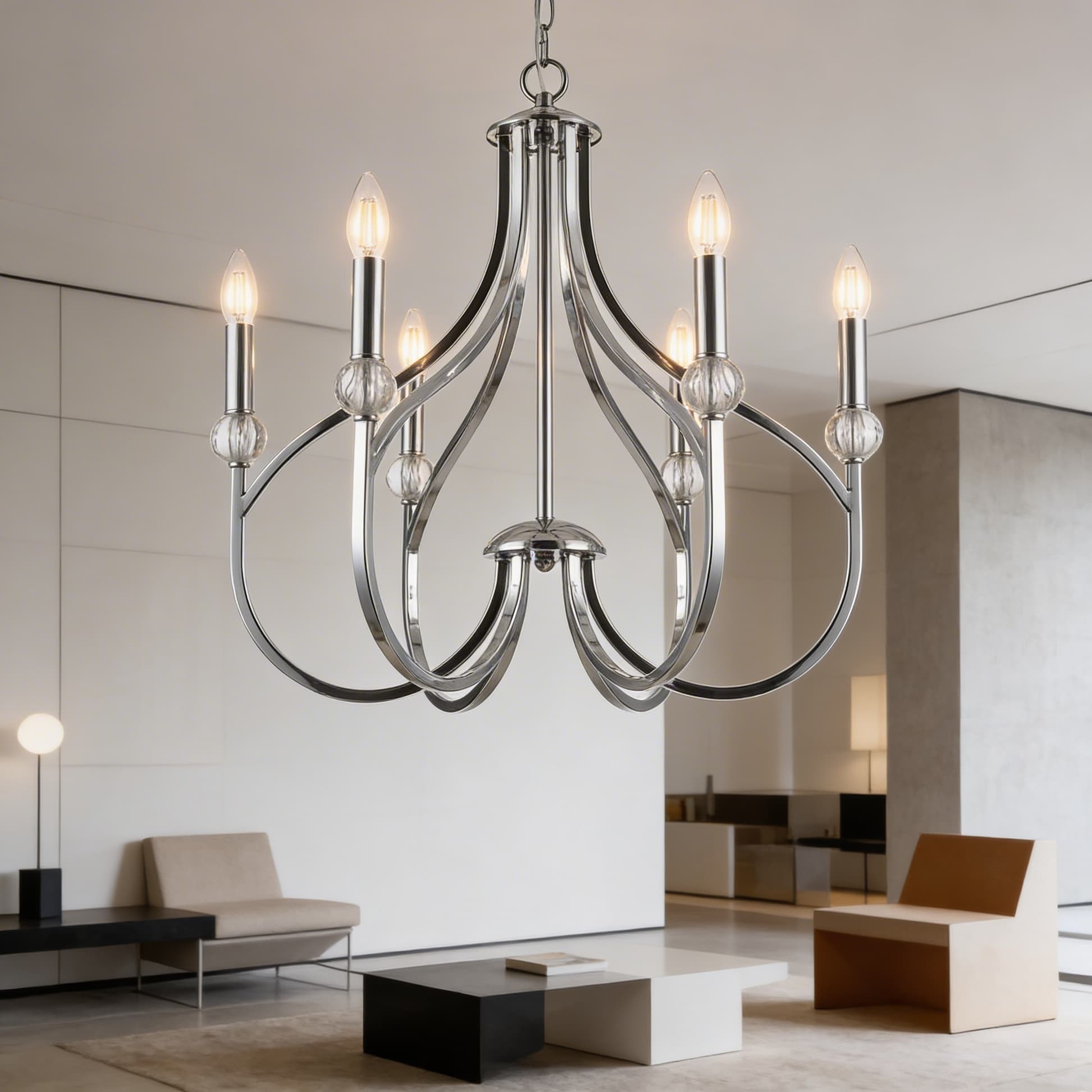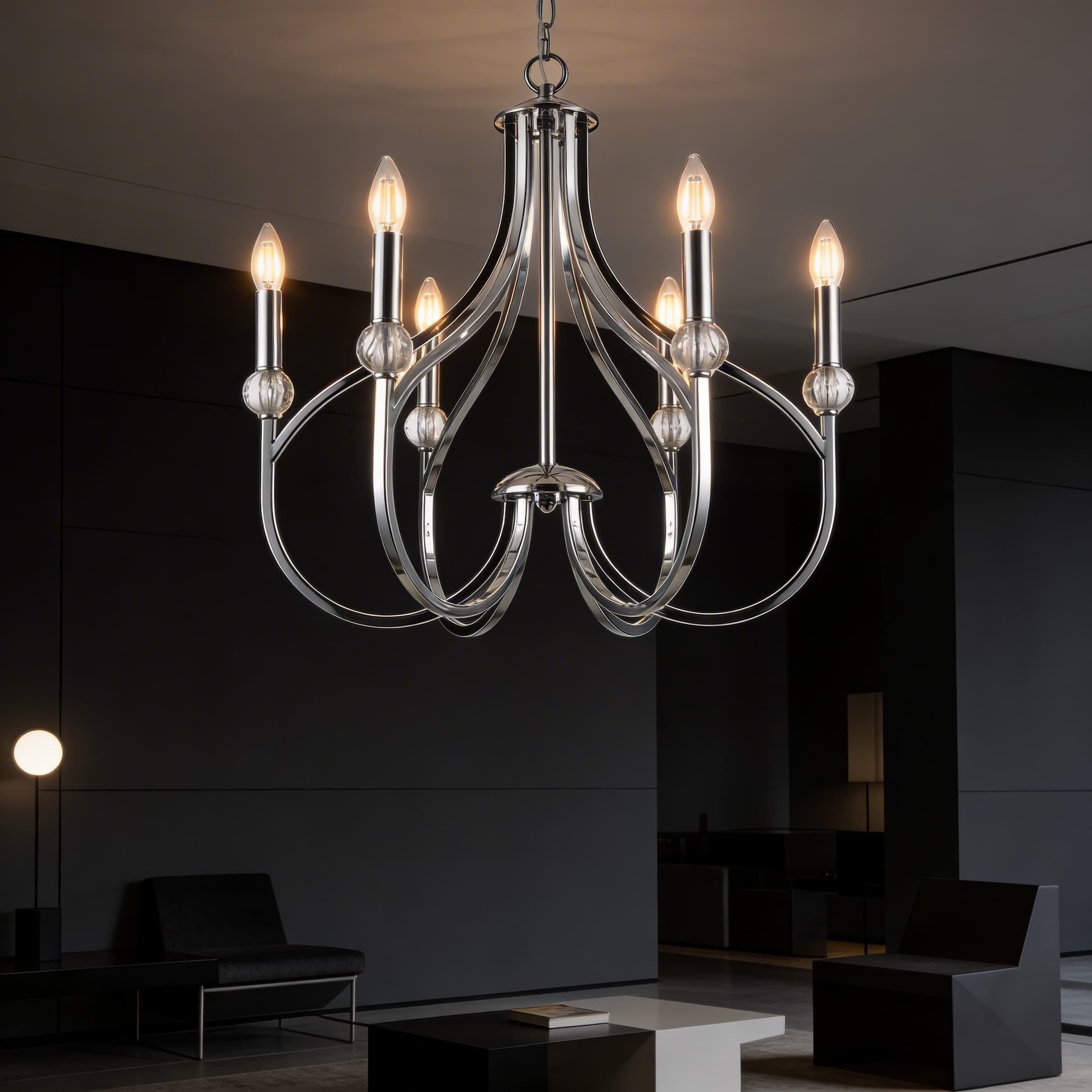 Niesłychanie prosta forma, która olśniewa ekskluzywnym charakterem i wysokiej klasy kryształami, będącymi subtelną ozdobą całości, to główne cechy lampy wiszącej ARCHETYPE W6. Niezwykła klasa lampy została podkreślona chromowaną oprawą oraz sześcioma kloszami, natomiast nowoczesny styl zawdzięcza ona surowemu, pięknemu projektowi. Sprawdzi się ona jako oświetlenie nobliwego salonu.