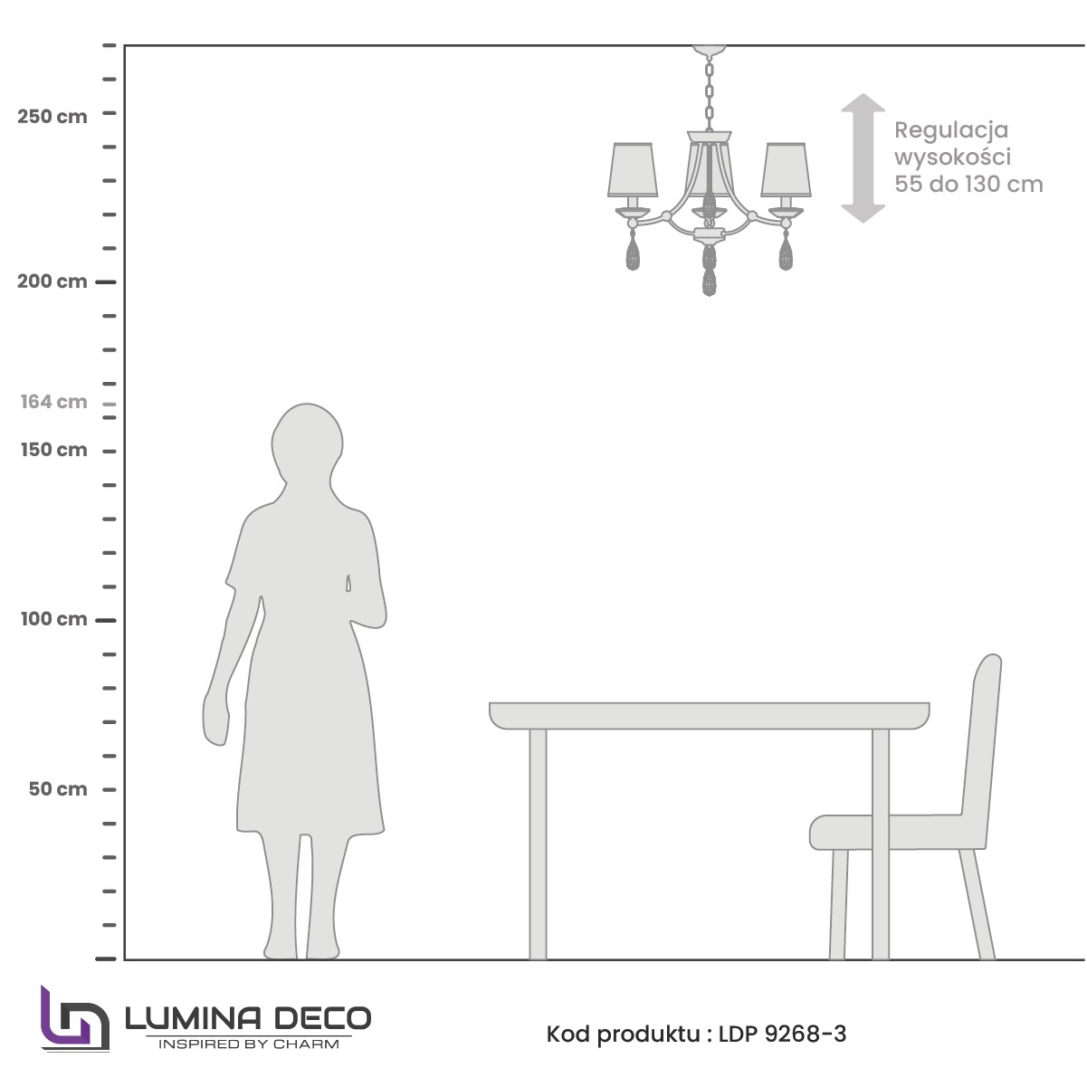 | Zakres regulacji (wysokość lampy wliczona) | Od 55 cm do 130 cm |